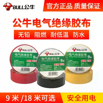Bull flame retardant tape electric tape insulation tape color electrical large roll PVC waterproof tape black 9 meters 18 meters