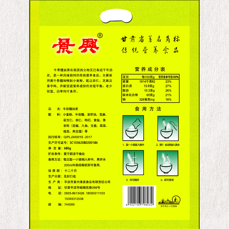 Flat Cool View Bull bone marrow oil tea 680 gr bagged non-Defoxiang Gansu Special production salty 5-jen oil tea 2 bags