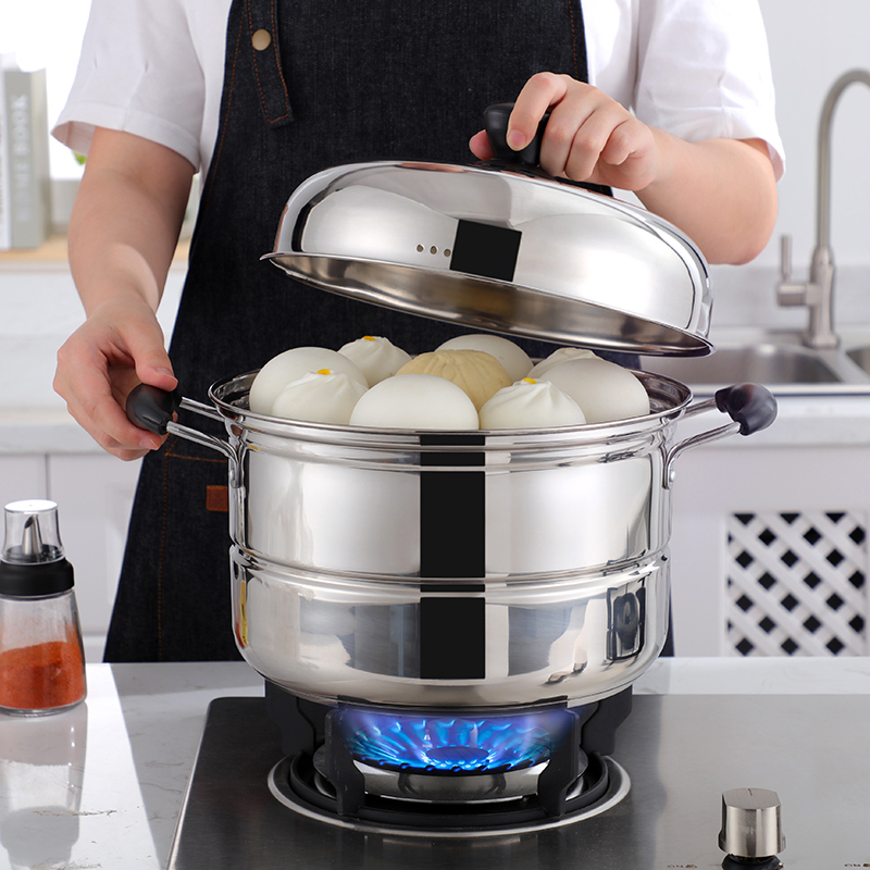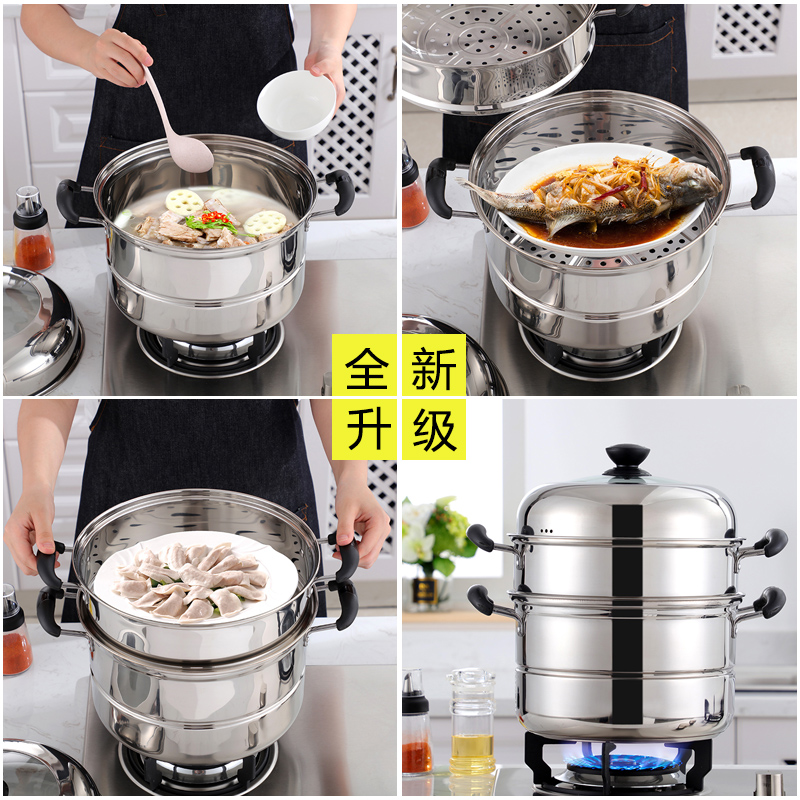 Stainless steel steamer thickened 36cm Domestic 2 layers Two-layer double layer Steamed Fish Pan Large Size Large Capacity Extra-large Stockpot