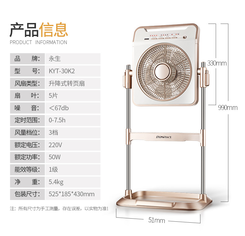 Evergreen electric fan KYT-30B mute remote control floor fan Home Hon-transport fan lifting mechanical box fan