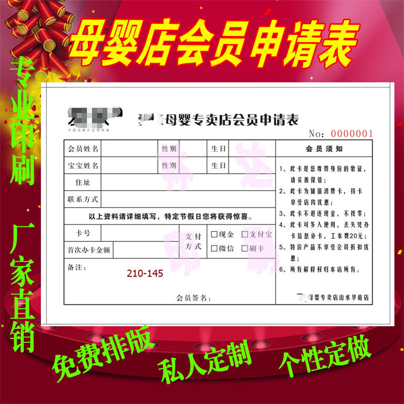 Health Care Skincare Membership Card Application Form to do printed Beauty and hairdressing Water flow Single Customer Service Single Consumer Order