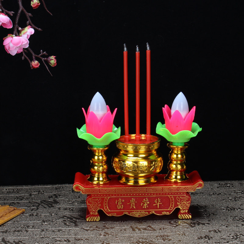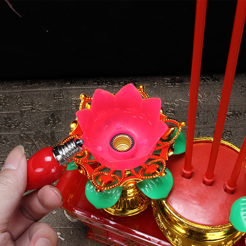 Lotus lamp In front of the rich Buddha Guanyin Bodhisattva supply lamp electric incense burner Electric candle table lamp Electric candle electronic incense plug-in