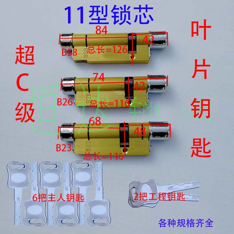 Type 11 lock cylinder Bao De press security door universal blade Super C grade iron Open hope beauty heart spring all kinds of old-fashioned B23