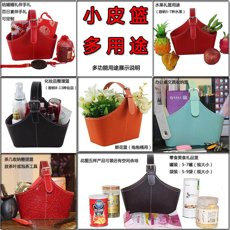 Upscale Birthday Wedding Companion Gift Flowers Snacks Fruit Small Leather Basket Cosmetics Office Supplies Admission Basket Promotions