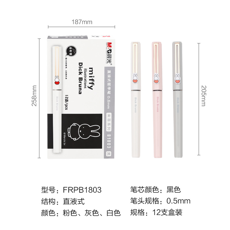 Chenguang straight liquid water-based ballpoint pen 0 5mm black carbon student replaceable ink sac core Water-based signature exam special quick-drying pen cute Korean small fresh female Miffy series B1803