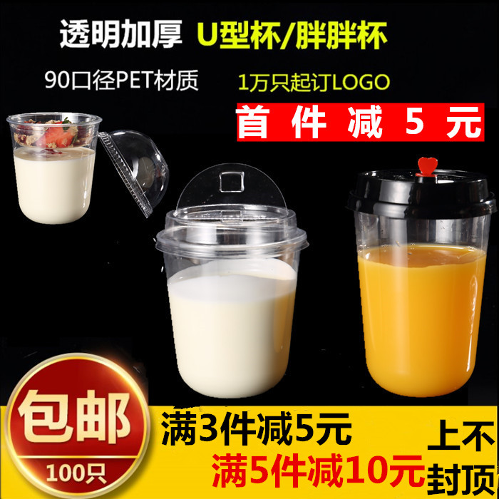 Disposable 90-caliber U-shaped fat cup milk tea cup yogurt juice pet high-permeability plastic cute Q cup 500ml with lid