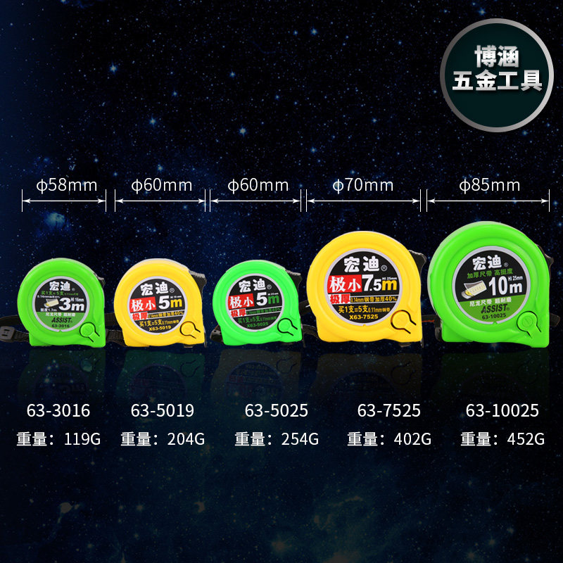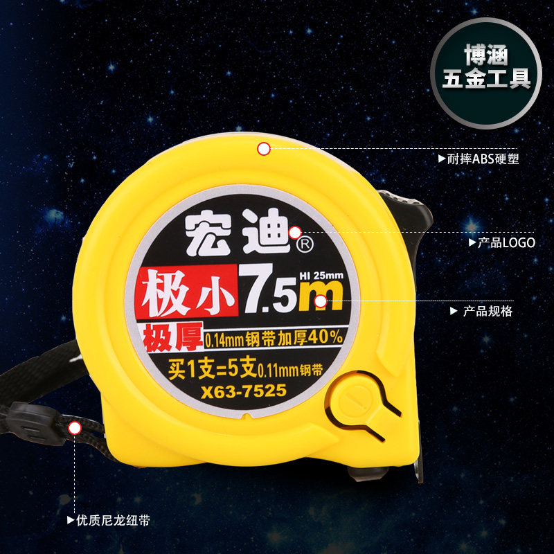 Hongdi tape measure 5 meters high-precision woodworking thickened metric nylon ruler with wear-resistant and drop-resistant steel ring measuring tool