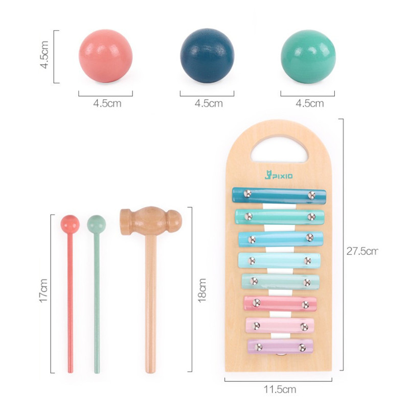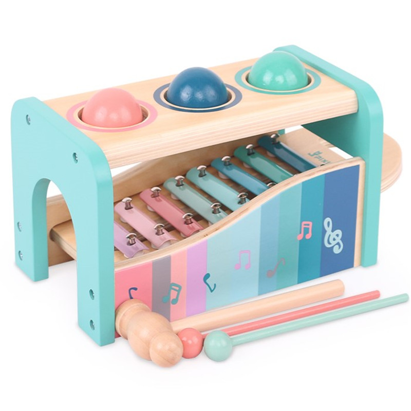 Nameta wooden knocks on the table Eight timbre hands on the violin The baby wooden dolly knock on the piling bench xylophone knocks the toy