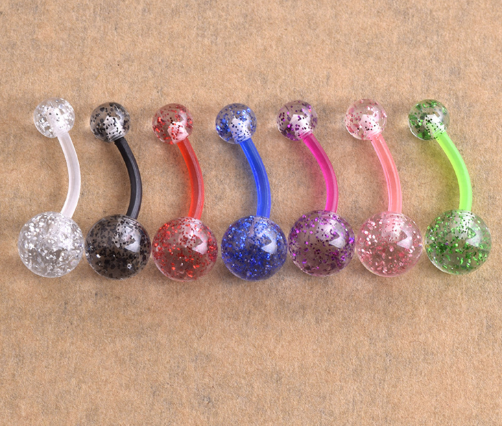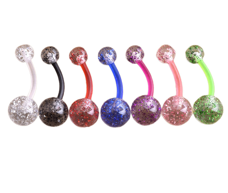 Sequin multicolor transparent plastic umbilical ring acrylic soft bar navel ring navel nail