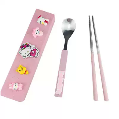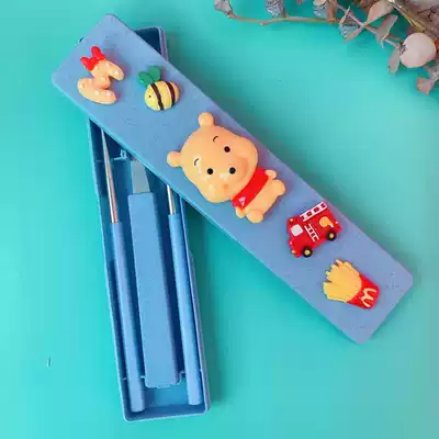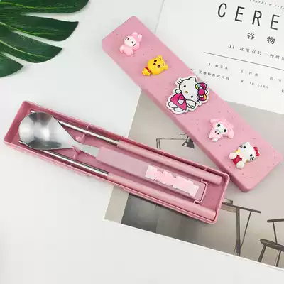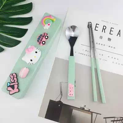 Cartoon stainless steel environmental protection wheat portable box spoon student cute tableware travel take-out chopsticks box set
