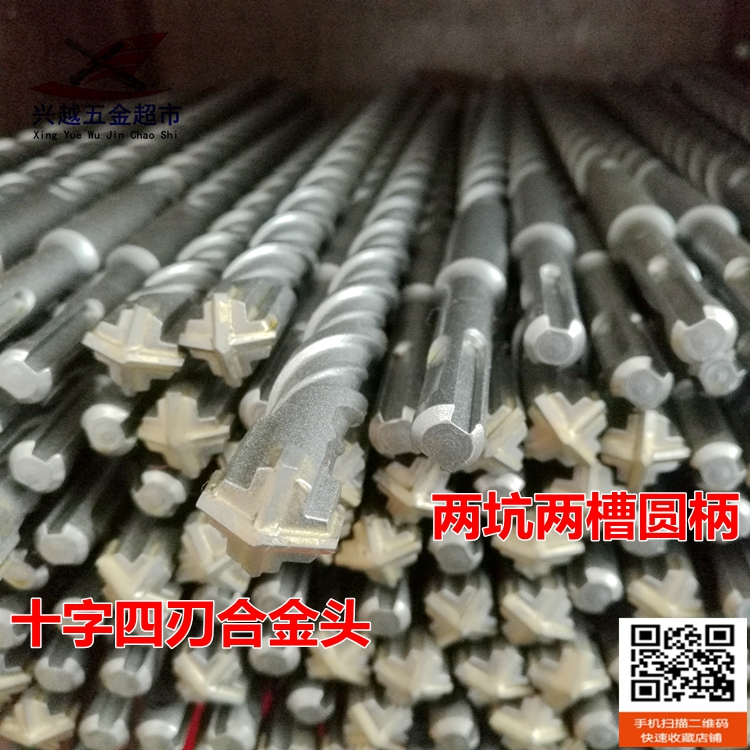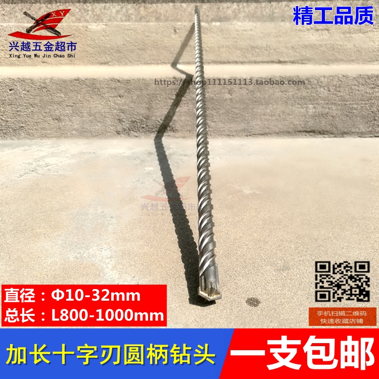 Lengthened cross-edge electric hammer drill bit 80 cm 1 m round handle Two-pit two-groove shock-fit drill 800-1000mm