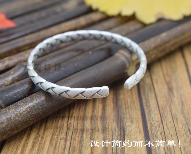 999 foot silver silver bracelet retro Thai silver twist woven with male and female creative personality opening pure silver bracelet