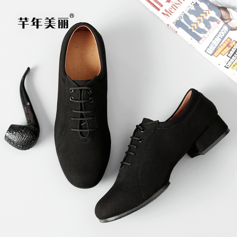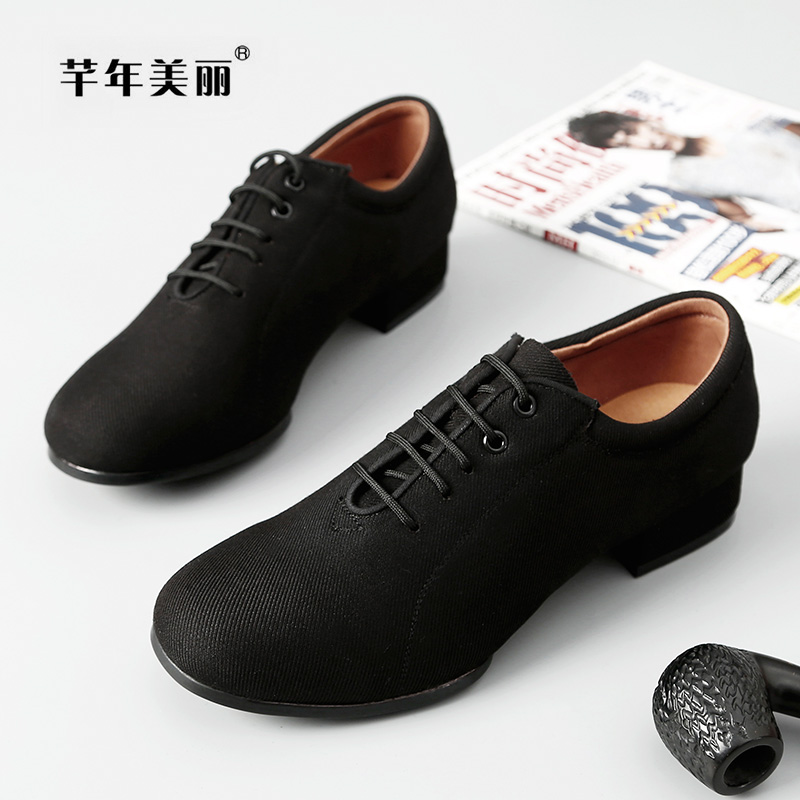 2020 Morden Men's Style Dancing Shoes Square Dance Shoes Social Dance Shoes Fabric Noodles National Standard Dance Shoes Two points Bottom Dancing Shoes