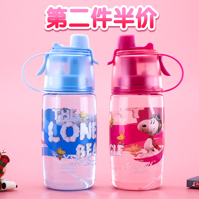 Children Sports Spray Cup Kettle Creative Cartoon Plastic Cup Portable Outdoor Summer Students Travel Cup