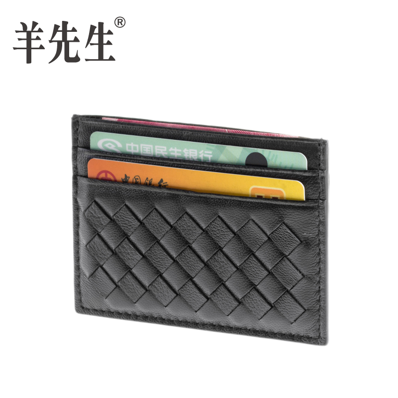 Mr. Sheep Woven Card Holder Men's Leather Small Card Holder Women's Soft Sheepskin Mini Coin Purse Ultra-thin Card Holder European and American Trends