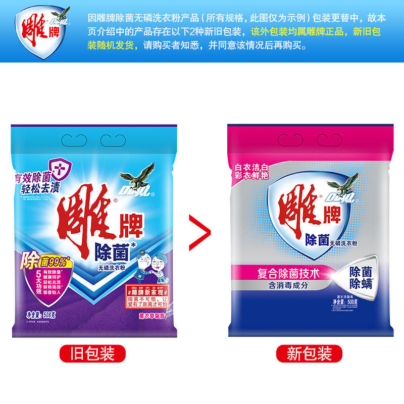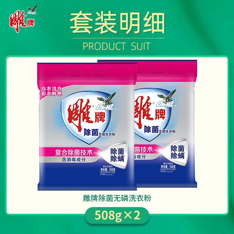 Carving brand washing powder sterilization phosphorus-free easy stain removal Foam moderate 508g*2 bags bagged household family pack
