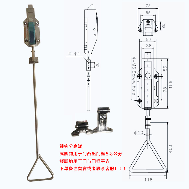 Pull handle (zinc alloy) Double door lock (zinc alloy) Pusher pull handle (304 stainless steel)Double door lock (304 stainless steel)