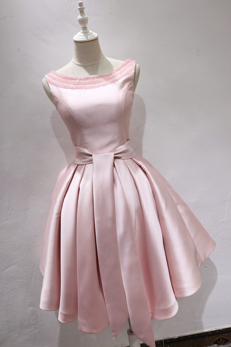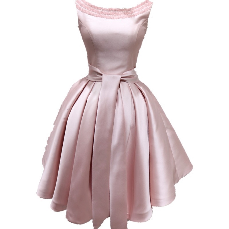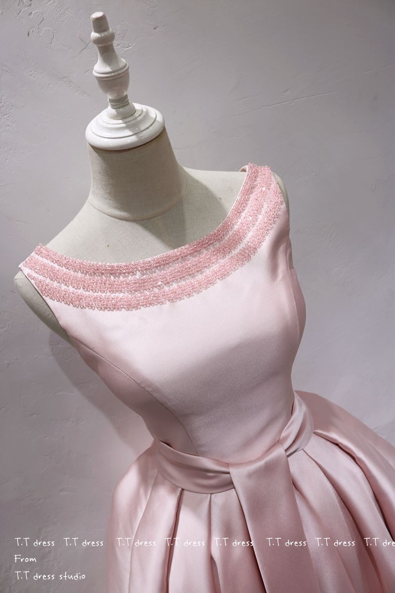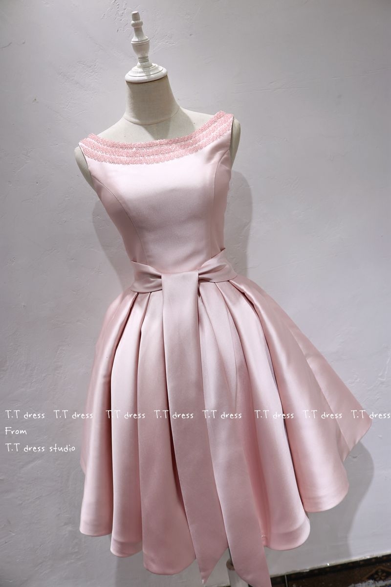 One-shoulder satin bridesmaid dress sweet meat pink dress party dress sister skirt birthday short evening dress