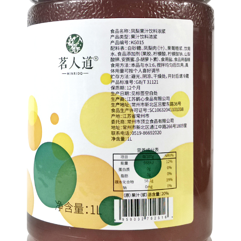 Dingliming humane pineapple granule jam milk tea shop special pineapple pulp granule jam concentrated thick paste 1 2kg