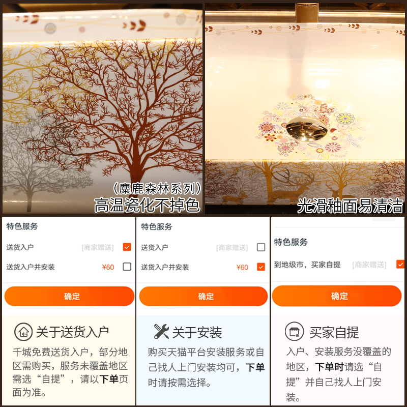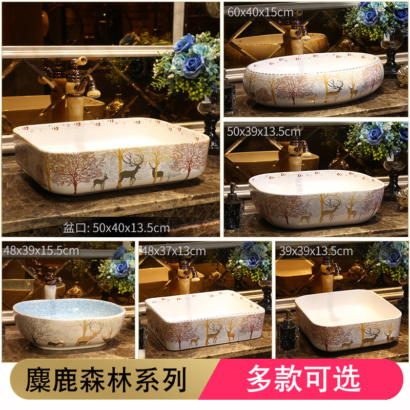 View Flames Elk Deer Art Terrace Basin Nordic Wind Ceramic Washbasin Rectangular Table Basin Washbasin Terrace Wash Basin