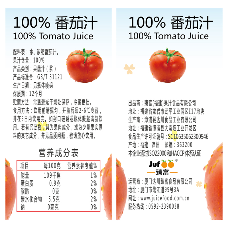 Zhenfu pure juice 100% tomato juice 1kg * 6 large bottles of unsweetened salt tomato juice fruit and vegetable juice drink drink