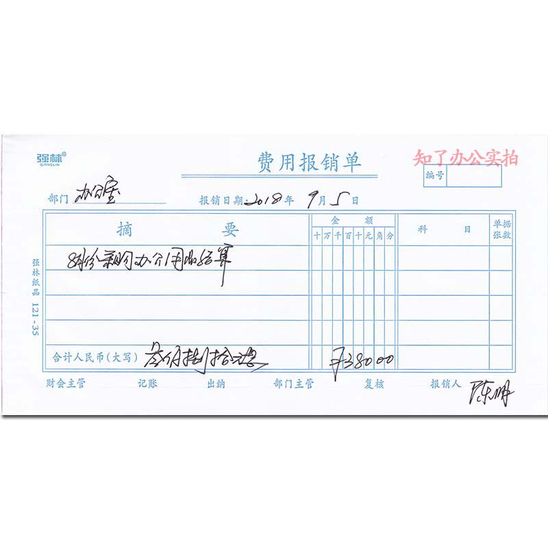 Cost reimbursement list 35 Opening up with reimbursement fee single use of single bill accounting supplies Qianglin paper products 121-35