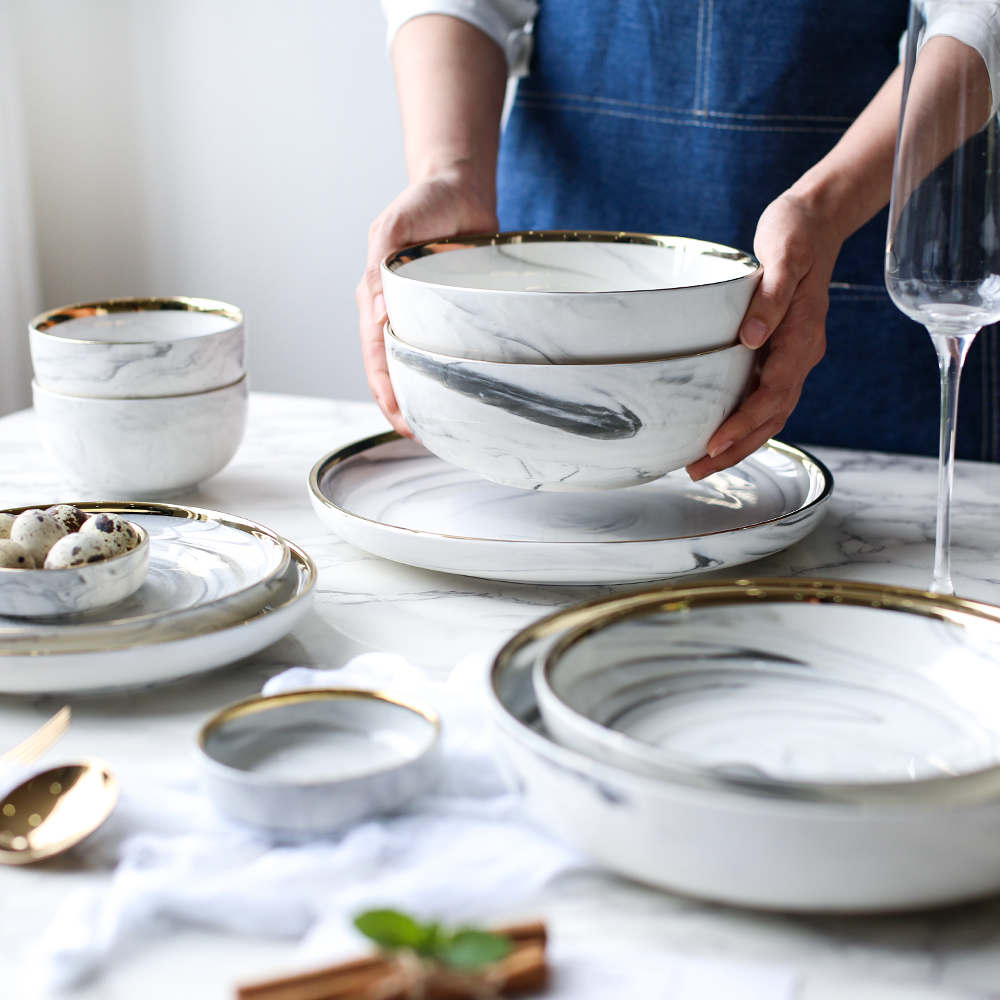 Kawashimaya Nordic Phnom Penh marble tableware bowl plate Rice bowl soup bowl Home ceramics creative personality ins wind
