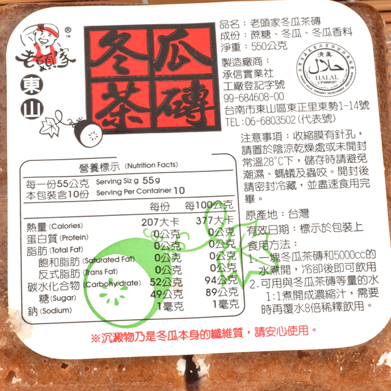 1 piece of Taiwan original imported old man red tag winter melon tea brick beverage juice clearing heat and heat relief 550g