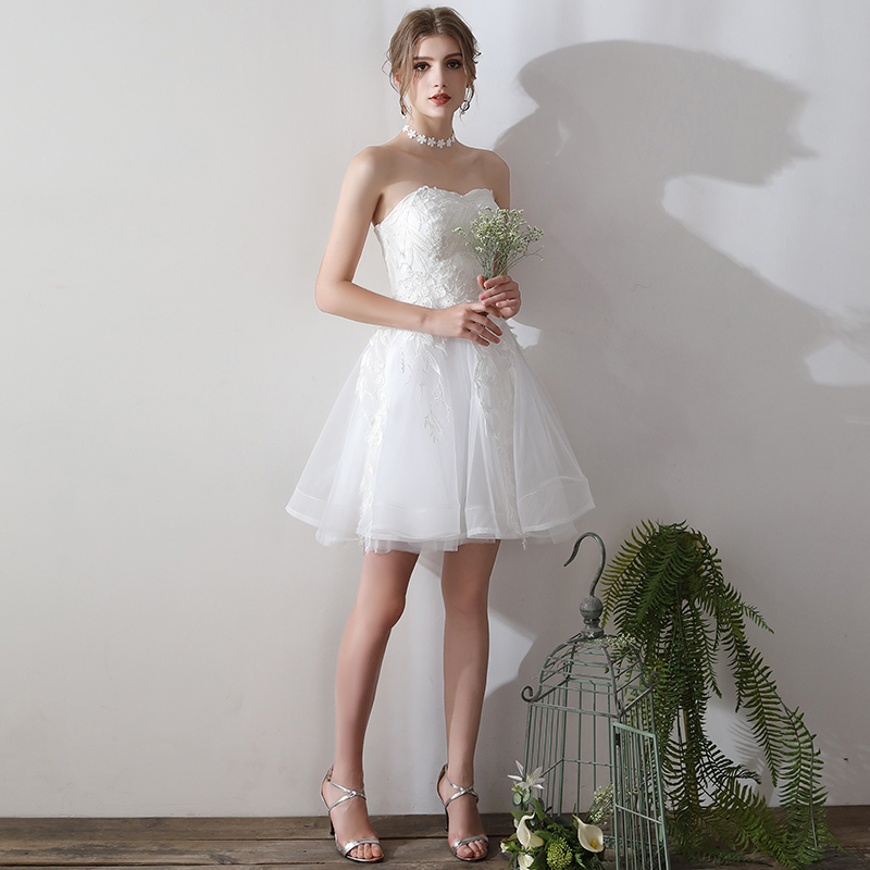 Wedding dress 2021 new short tube chest simple light wedding dress forest slim little girl go out