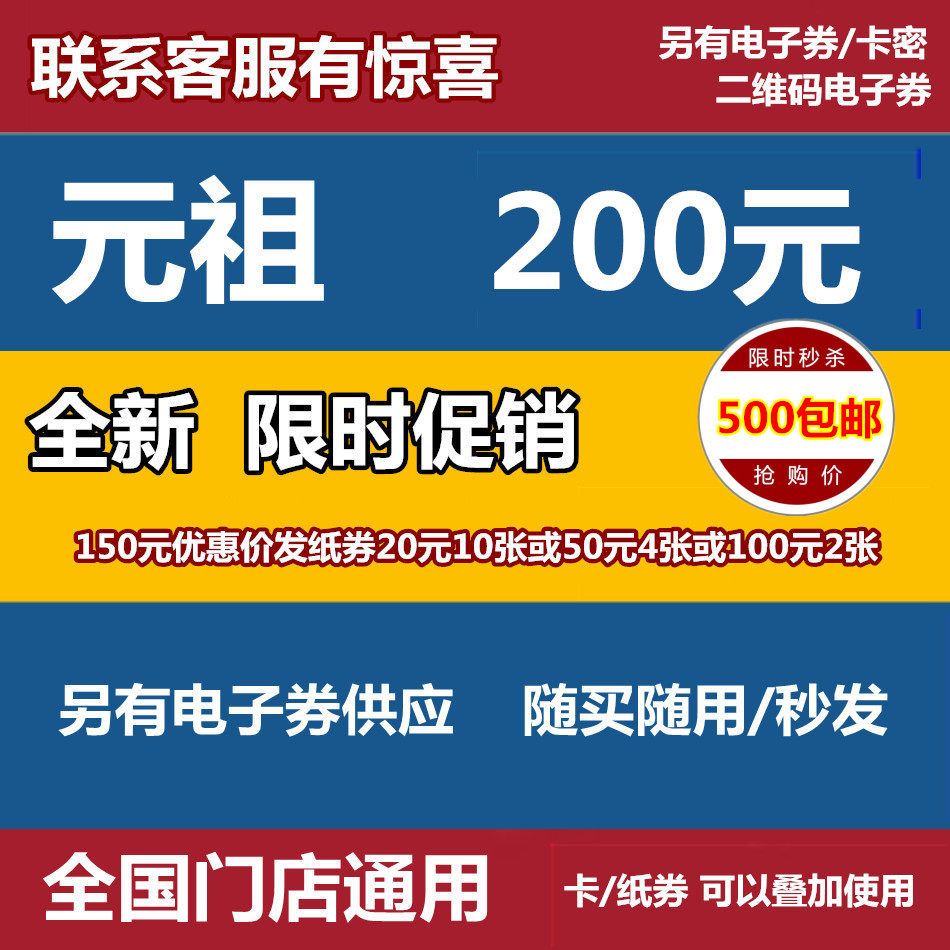 Yuanzu card 200 yuan paper coupon birthday cake red hi egg mung bean cake discount e-coupon cash card 3 pieces