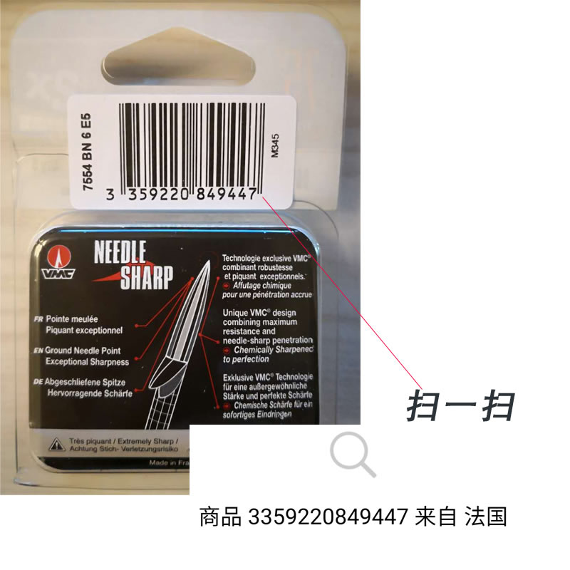 VMC France imports double-strengthened three hooks 7554 with barbed high carbon steel fish hook Luya hook anchor hook