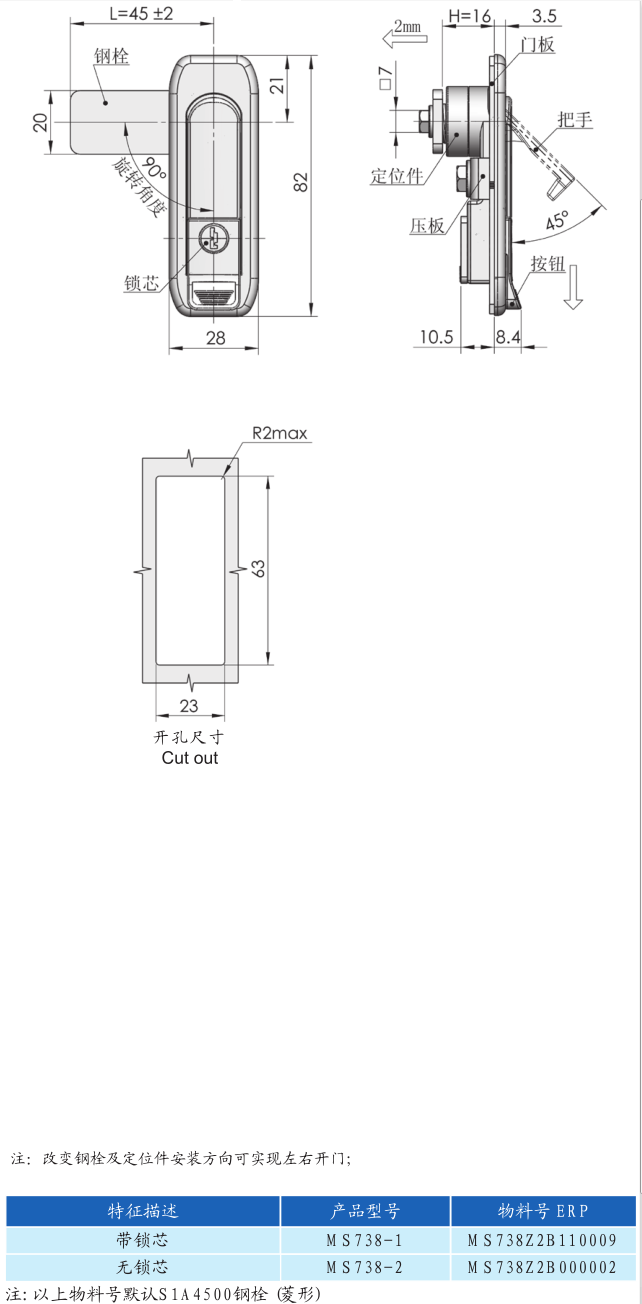 Raw Cupboard Lock Distribution Cabinet Lock Plane Lock MS738-1 MS738-2MS738-1A SJ Quality Assurance