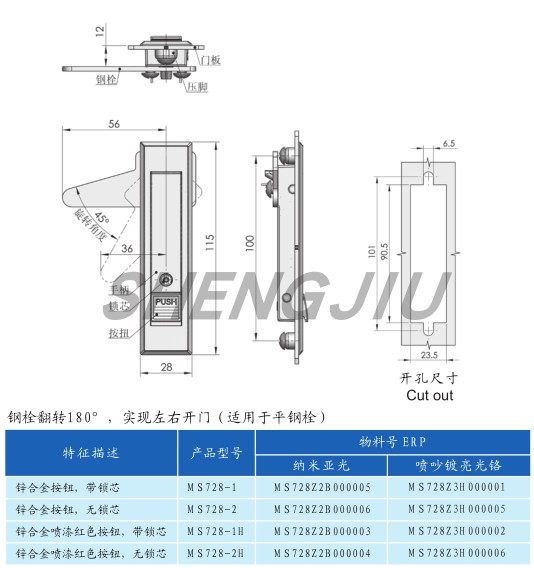 MS728-1 with lock cylinder MS728-1H with lock cylinder MS728-2 without lock cylinder MS728-2H without lock cylinder