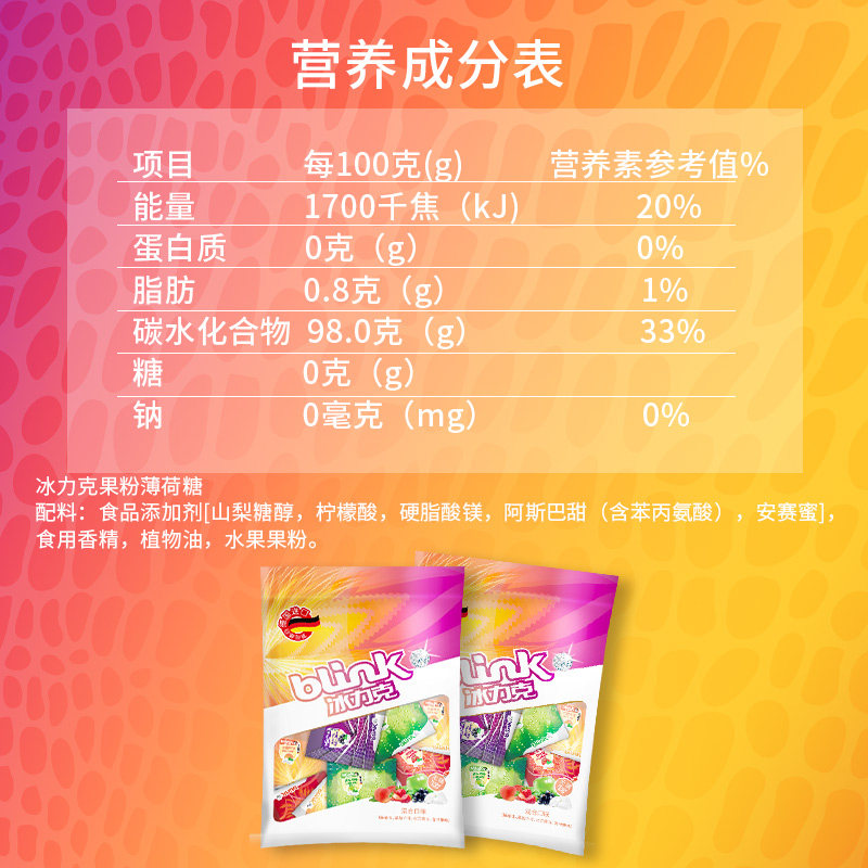 Germany imported blink ice lick sugar free fruit powder mint candy tablet Sugar 100 grains X2 big bag kissing sugar