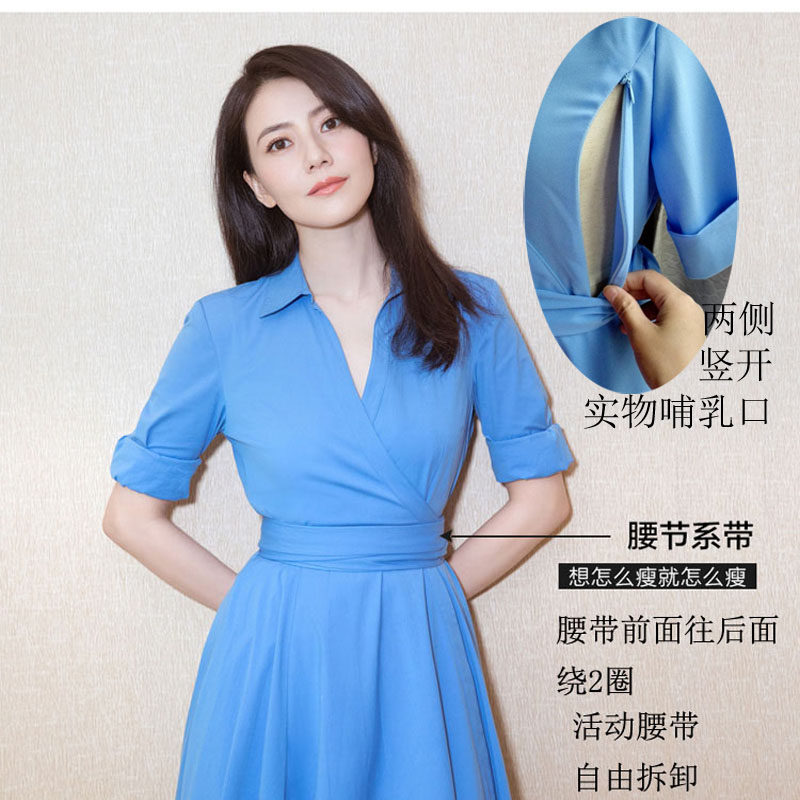 Goddess Fan temperament snowspun breast-feeding foreign fashion Fashion Spicy Mother's summer short sleeves Thin Medium Long Version Lactation