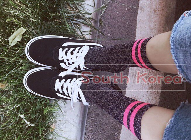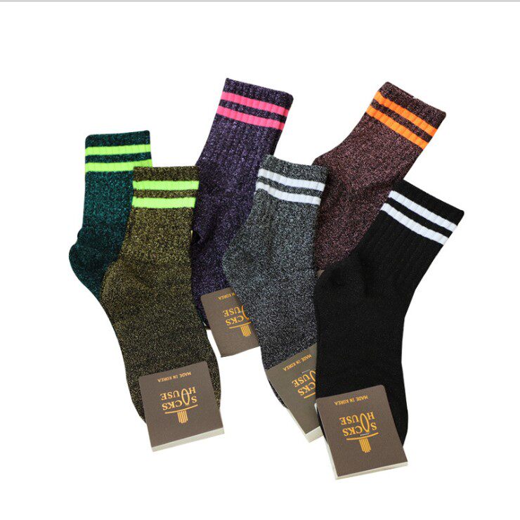 South Korea imported gold and silver silk bubble socks bright silk silver onion socks two bars in the tube socks female ins tide fashion net red
