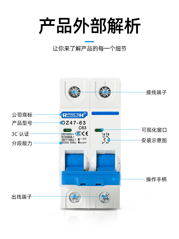 Shanghai People's Small Circuit Breaker Air Switch Household Short Circuit Protection DZ47-63A1P2P3P Air Conditioning Gate