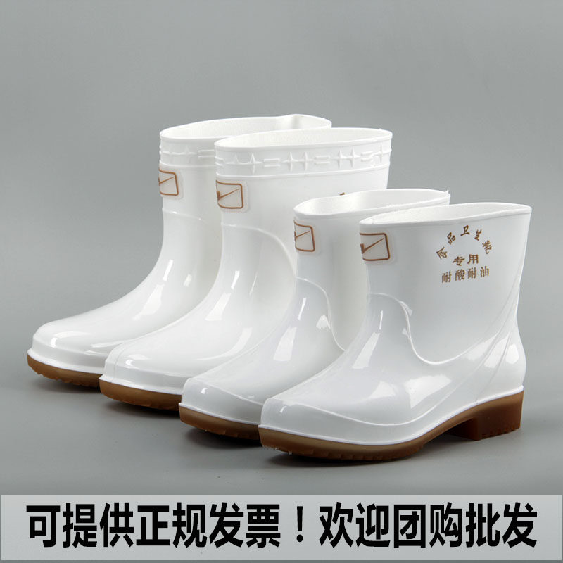 Double star white food boots short tube non-slip anti-oil anti-acid and alkali sanitary boots waterproof rain boots water shoes mid-high tube rubber shoes