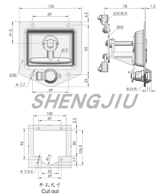 Shengjiu cabinet lock panel lock MS856 handle torque 24N m SJ quality assurance