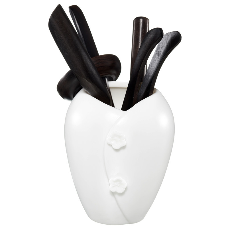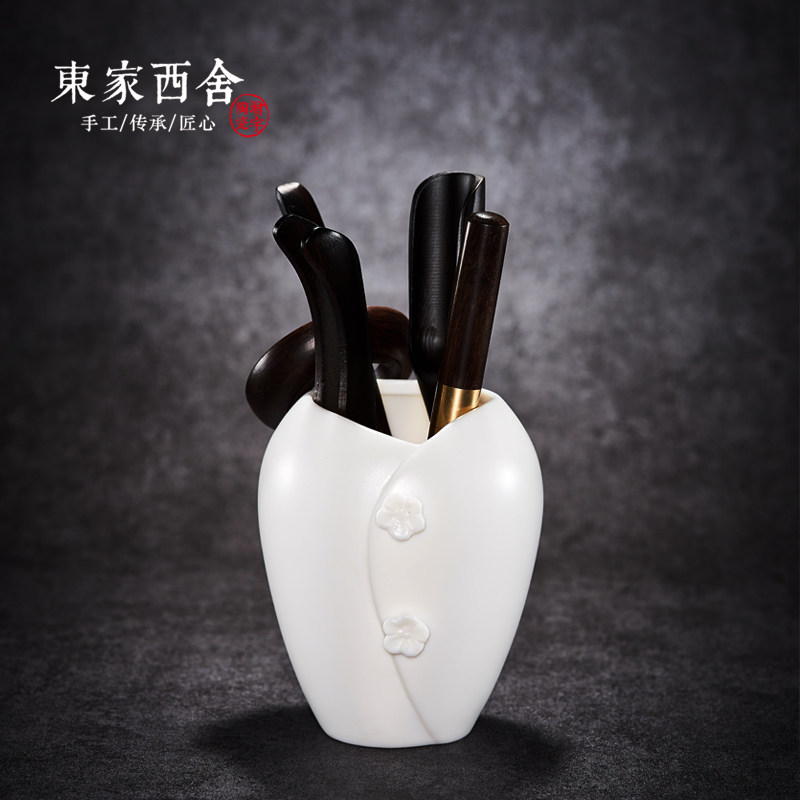 Fine white porcelain tea tube Fine white porcelain ebony wood group