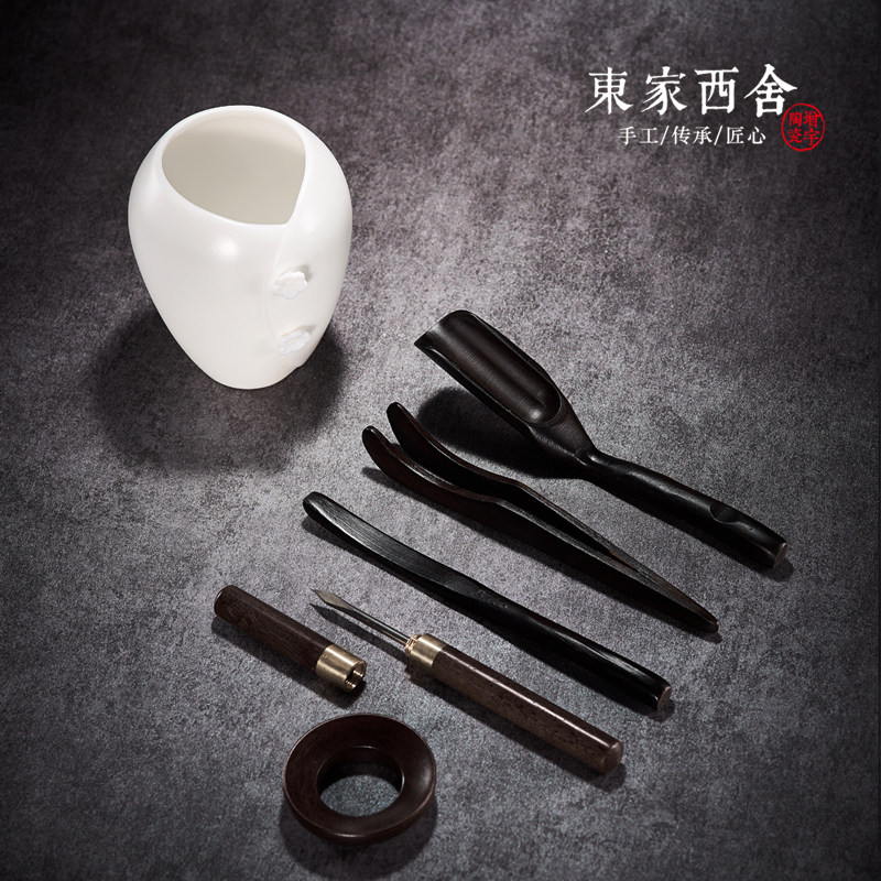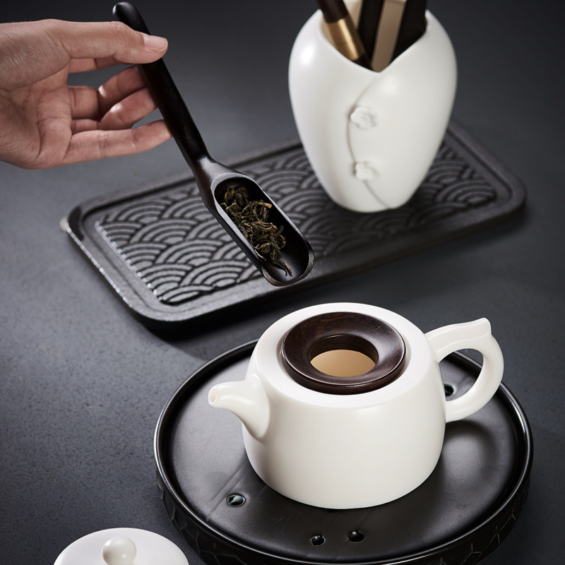 Dongjia Tea Ceremony Six gentleman suit Kung Fu tea set Tea ceremony 6-piece set Dehua White Porcelain Ebony solid wood tea accessories
