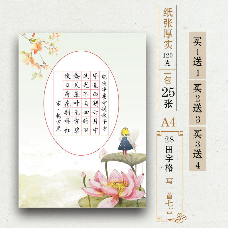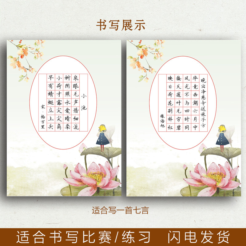 a4 Field character grid hard pen calligraphy paper seven words 28 grid primary school students ancient poems vertical edition Chinese style competition special writing paper