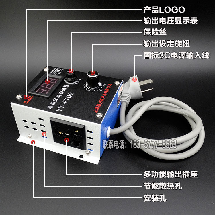 Single-phase 220V AC motor speed regulator 4KW fan ventilator speed switch thermoregulation dimming live pressure gauge