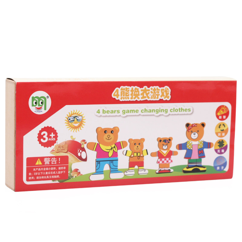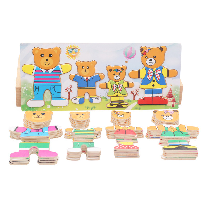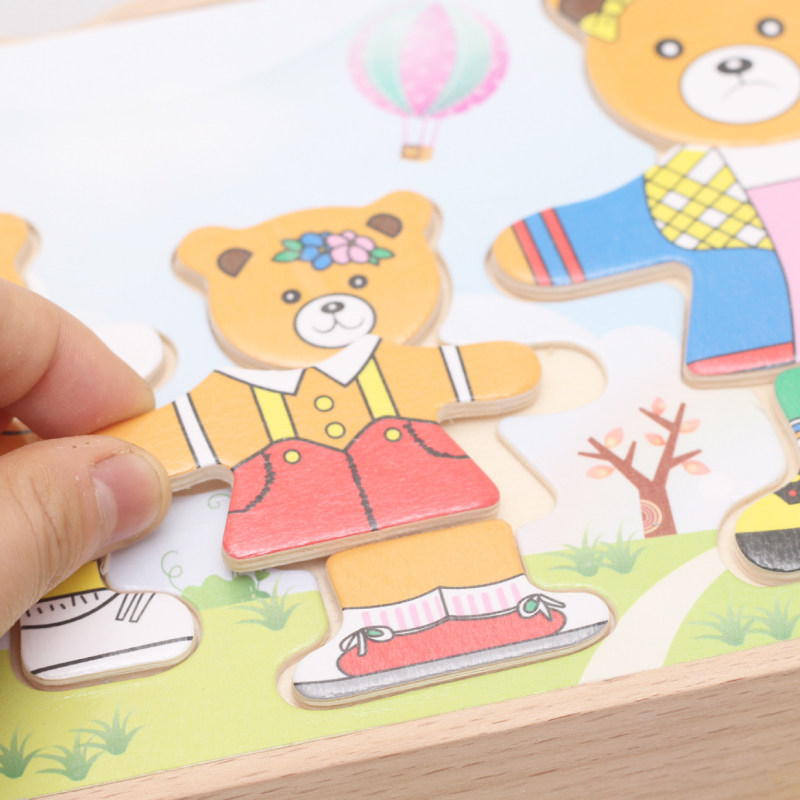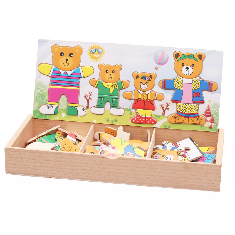 Children's wooden boxhands catch small bear for wearing clothes, game toy baby puzzle jigsaw puzzle puzzle puzzle interesting development intellect