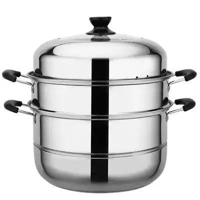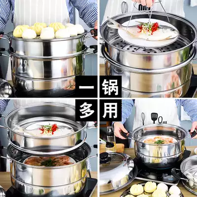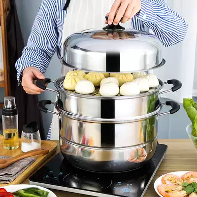 Steamer stainless steel household bottom three-layer thickening 3-layer double small 2-layer steamed bun steamer large gas stove special