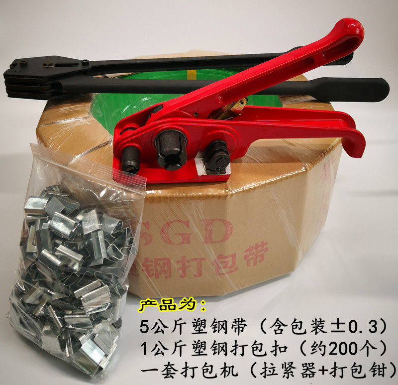 5kg plastic steel belt + 2 kg buckle + a set of baler 10kg plastic steel strip + 3 kg buckle + a set of baler 20kg plastic steel strip + 4 kg buckle + a set of baler