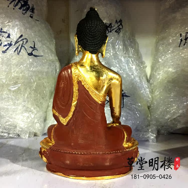 Tibetan Buddhism Buddha statue of Sakyamuni Buddha statue pure bronze semi-oliver gold handcrafted painting of Buddha Buddha Hall of Buddha