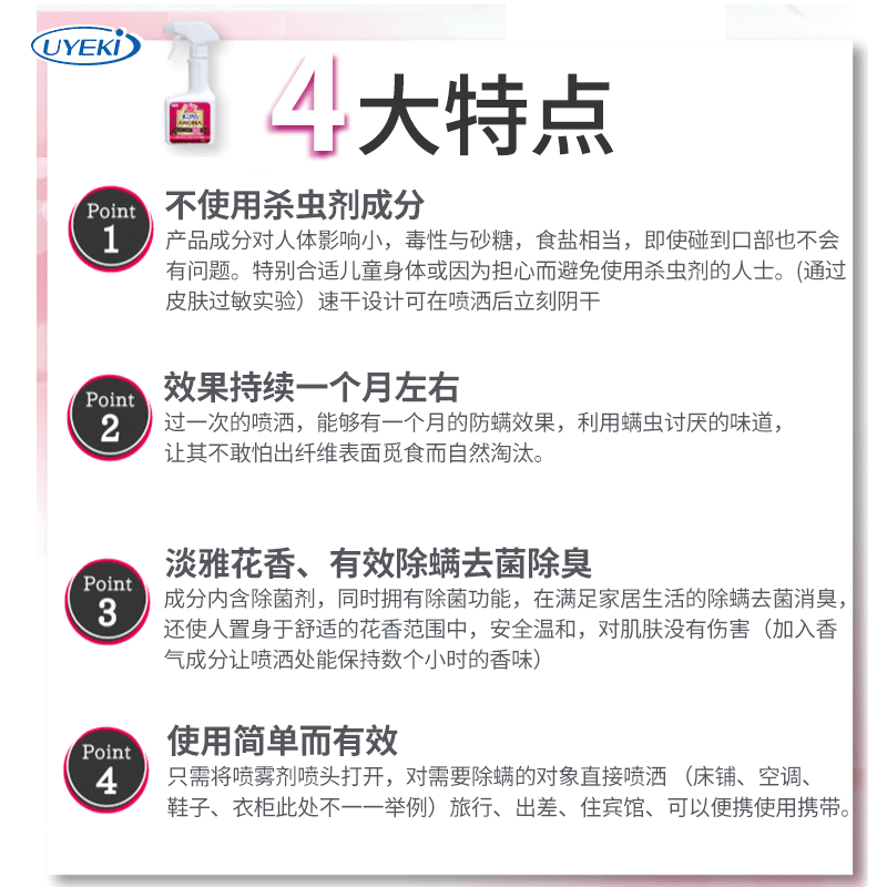 UYEKI Japan imported sterilization and acaricide spray bed wash-free mite spray flower fragrance 250ml