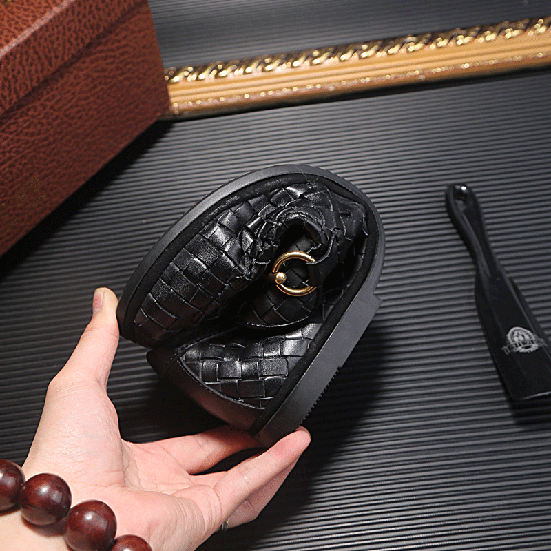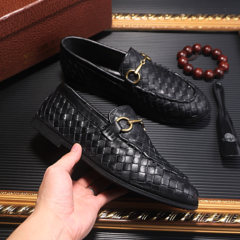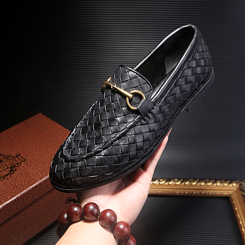 2022 new genuine leather woven men's shoes Inn sloth sloppy set foot driving shoes Business breathable casual leather shoes Bean Bean Shoes