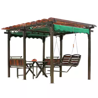 Outdoor swing courtyard leisure anticorrosive wood grape rack carbonized solid wood pavilion iron wooden house climbing vine flower frame Swing Swing